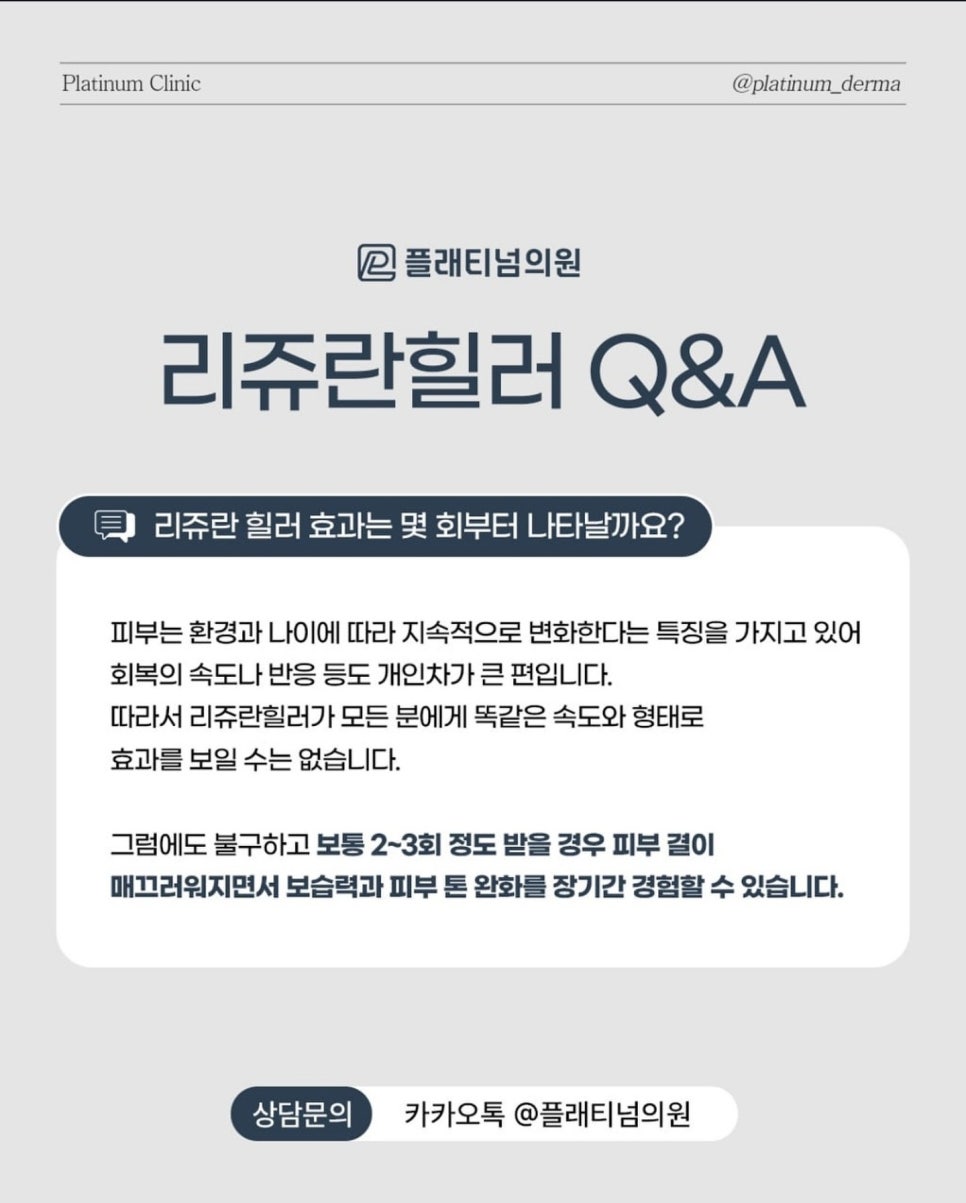 너무 얇게 펴 바른 페인트가 제 색을 내지 못하듯, 리쥬란힐러 역시 피부 전체에 충분한 밀도로 깔렸을 때 비로소 우리가 원하는 '탄력의 힘'이 생깁니다.