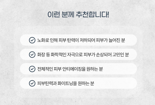 내 피부 상태에 맞는 정교한 계획이 세워질 때, 비로소 투입한 비용 이상의 만족스러운 변화를 만나실 수 있을 것입니다.