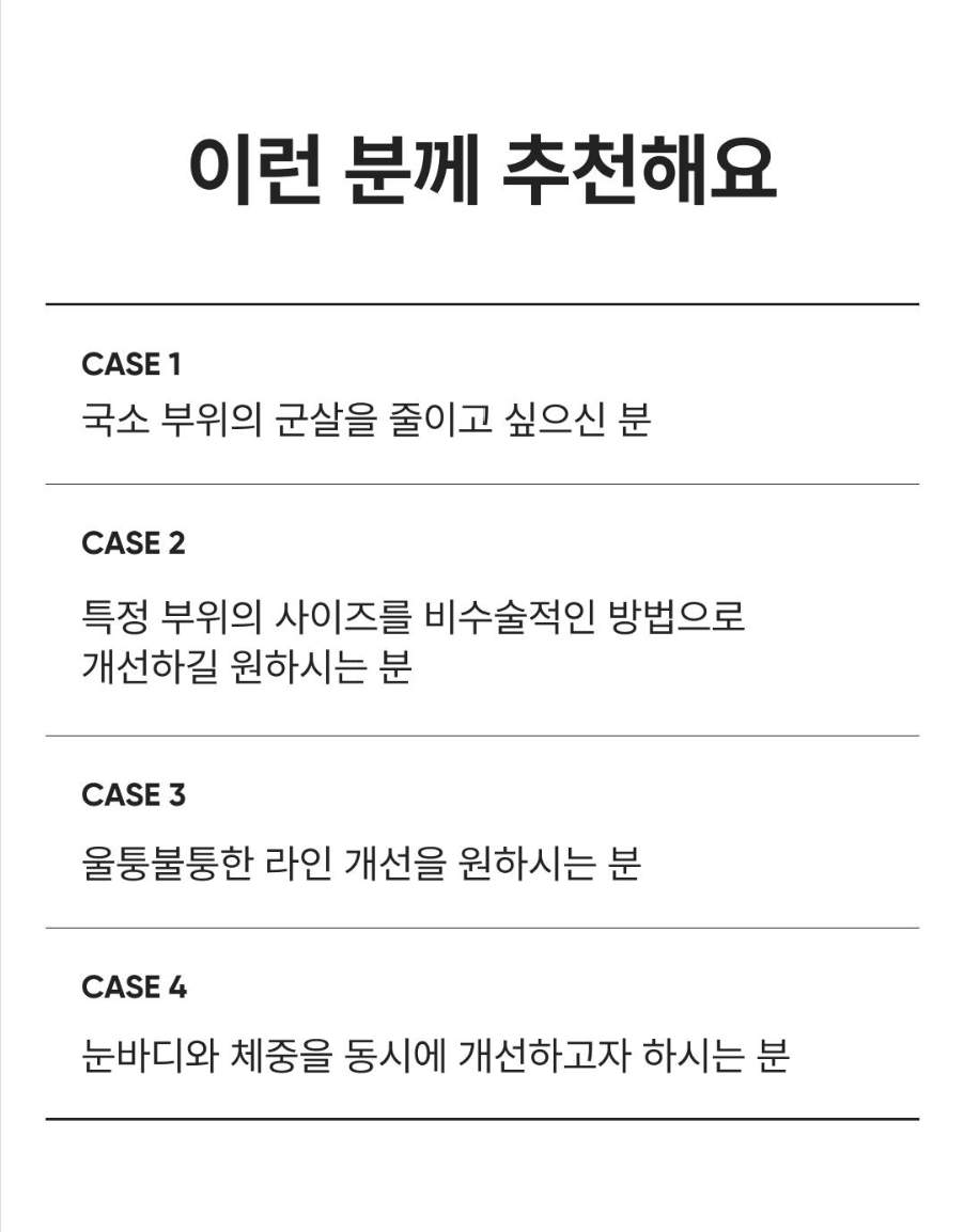 전체적인 체중은 분명히 줄었는데, 유독 그 부위만 라인이 살아나질 않아서 답답하셨던 분들 꽤 많으실 거예요.