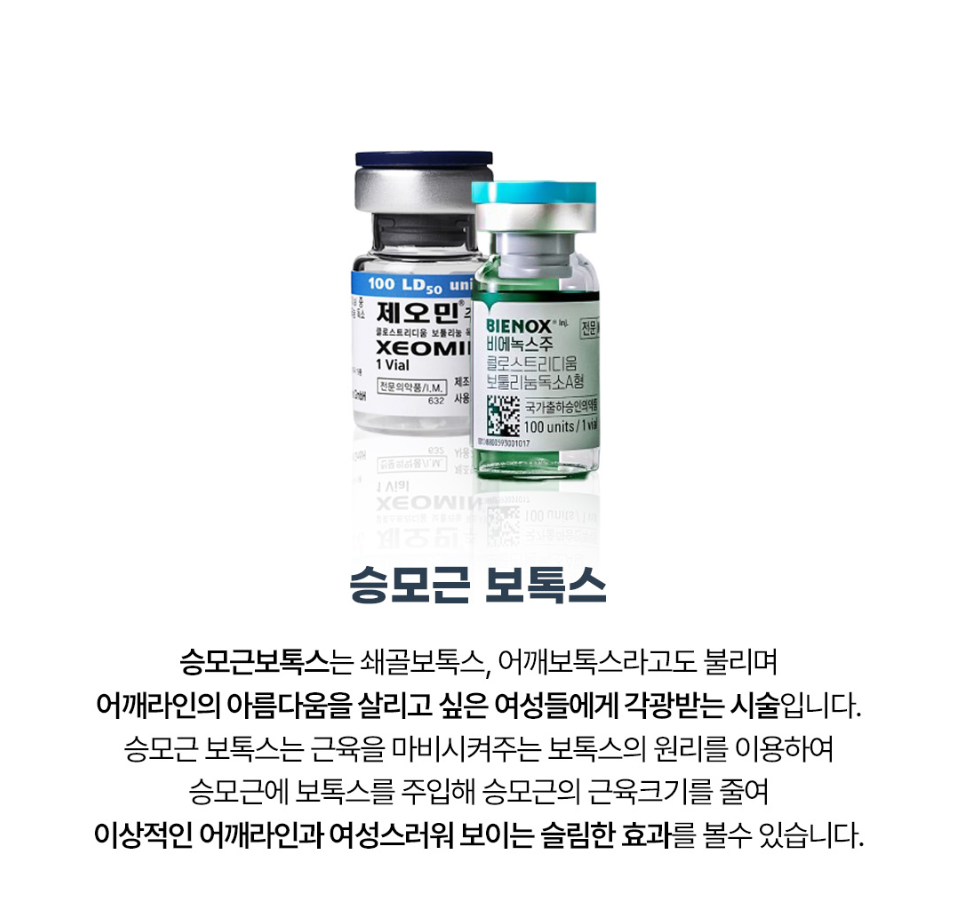 승모근은 근육량이 많아 얼굴보다 고용량이 들어가는데요.