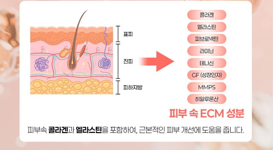 쉽게 말하면 피부 속 콜라겐·엘라스틴·히알루론산 같은 성분들이 서로 연결된 '그물망 구조'라고 생각하시면 돼요.
