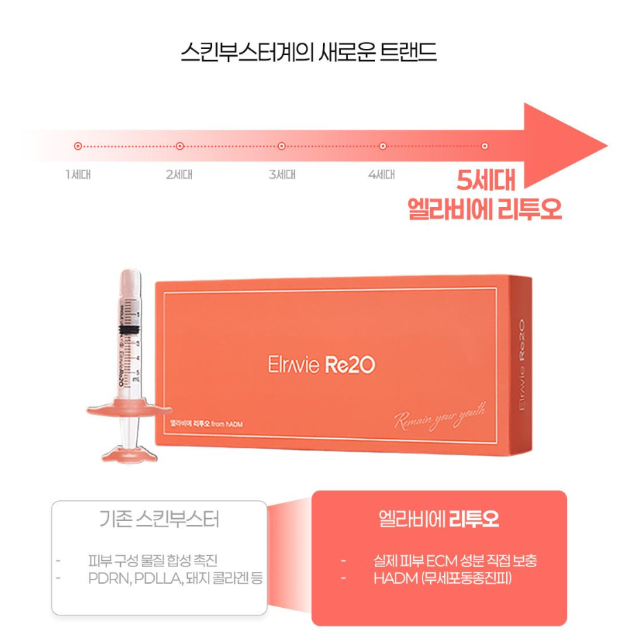 신사역엘라비에리투오는 hADM(무세포동종진피) 기반의 ECM(세포외기질) 성분을 피부에 직접 주입하는 방식입니다.